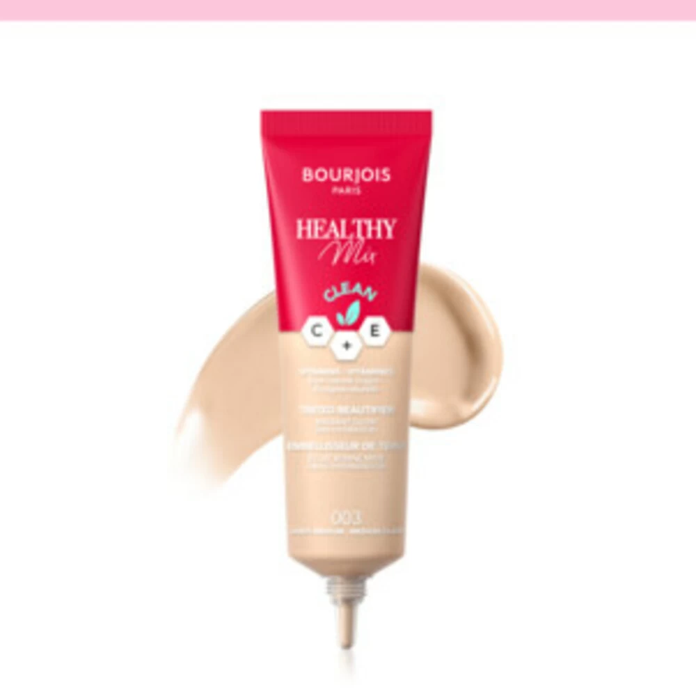 Bourjois Healthy Mix Tinded Beautifier Foundation 003 Light MediumVervaag je oneffenheden en geef je huid een gesublimeerde teint in één enkele beweging. De foundation is verrijkt met kokosolie en vitamine C en E en zorgt voor 24-uurs hydratatie. Zie je huid verbeteren in slechts 2 weken! De precieze applicator en vloeiende textuur zorgen voor een nauwkeurige, gemakkelijke en snelle applicatie.Verpakking van 48% gerecycled plasticVoor een gezonde uitstralingVerrijkt met vitamine C