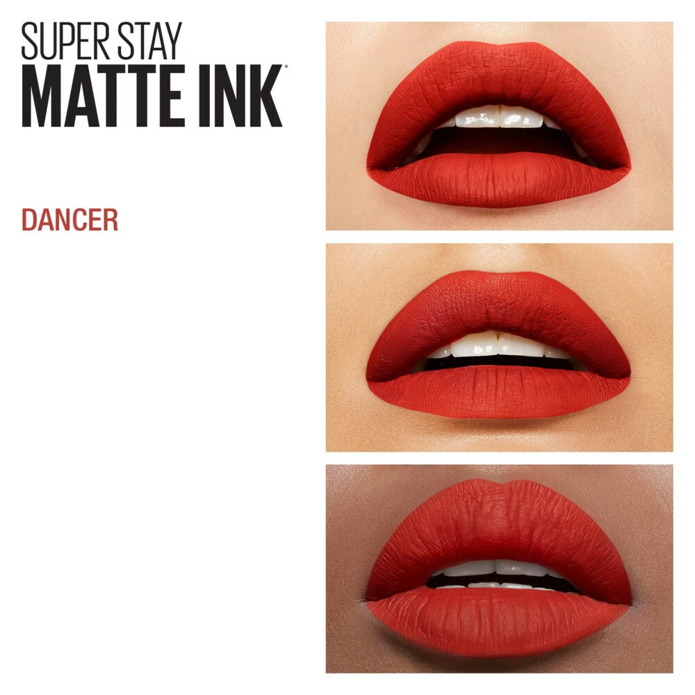 Maybelline New York SuperStay Matte Ink 118 Dancer – langhoudende lipstick met een trendy ultra matte finish die tot 16 uur blijft zitten – rode liquid lipstick – 5 mlMaybelline New York introduceert de matte ink lipsticks met intense kleurimpact: SuperStay Matte Ink. SuperStay Matte Ink 118 Dancer is een liquid lipstick met een rode kleur. Van diner tot date in de city that never sleeps – de Maybelline SuperStay lipsticks kunnen elke uitdaging aan!- De langhoudende rode lipstick blijft tot 16 u