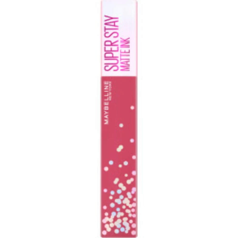 Maybelline SuperStay Matte Ink Lipstick Birthday Collection 395 Birthday BestieMaybelline New York viert vijf iconische jaren van intense kleurimpact met SuperStay Matte Ink Birthday edition – en jij bent uitnodigd! De lipstick heeft een unieke pijlvormige applicator waardoor je de lipstick nu nog preciezer kunt aanbrengen. De SuperStay Matte Ink lipsticks van Maybelline zijn langhoudende matte lipstick die tot 16 uur blijft zitten waardoor je de hele dag geniet van perfect matte, gekleurde lipp